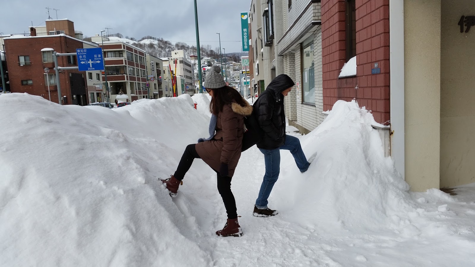 我在抵达千岁机场当天,立即就去买了一对防滑鞋底,但也防不胜防。很佩服日本女人穿着高跟鞋,也能在雪地上快步行走,有些还快跑呢!真了不起!