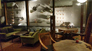 一顿丰盛的日式晚餐之后,我们捧着大肚腩到憩息室。这里是旅馆唯一可上网的地方,但偌大的空间舒服得有家的感觉。